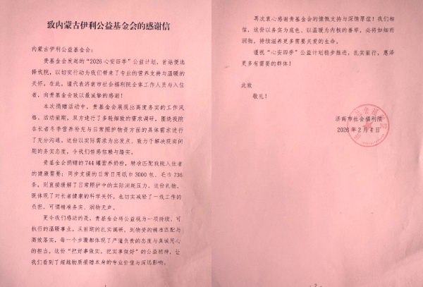 济南市社会福利院出具的感谢信,对基金会的精准务实态度表示高度认可,见证了一场以倾听为起点的温暖行动