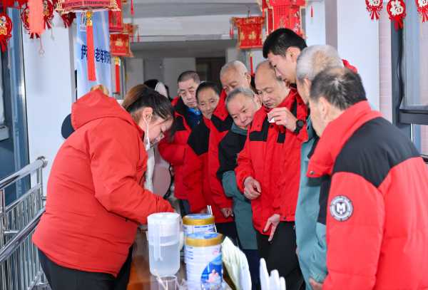 志愿者与长者们围坐一起,冲泡品尝奶粉,将温暖陪伴融入日常生活瞬间,笑容洋溢,温情满溢