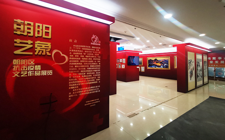 6月15日,“朝阳艺象”北京市朝阳区抗击疫情文艺作品展览在北京朝阳区区政府一层大厅开展,共有书法、美术、摄影、民间艺术、音乐等100件抗疫主题艺术作品参展,展览由朝阳区委宣传部、朝阳区文联共同举办。