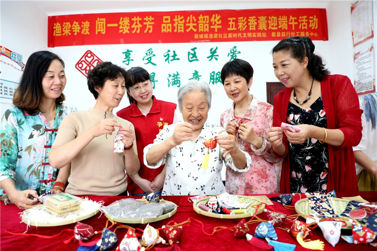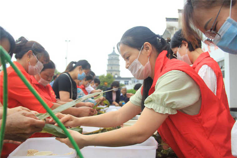 徽州区潜口镇妇联联合潜口村组织志愿者在潜口村新时代文明实践站开展“庆端午·颂党恩·迎小康”为主题的志愿服务活动。来源:徽州区潜口镇