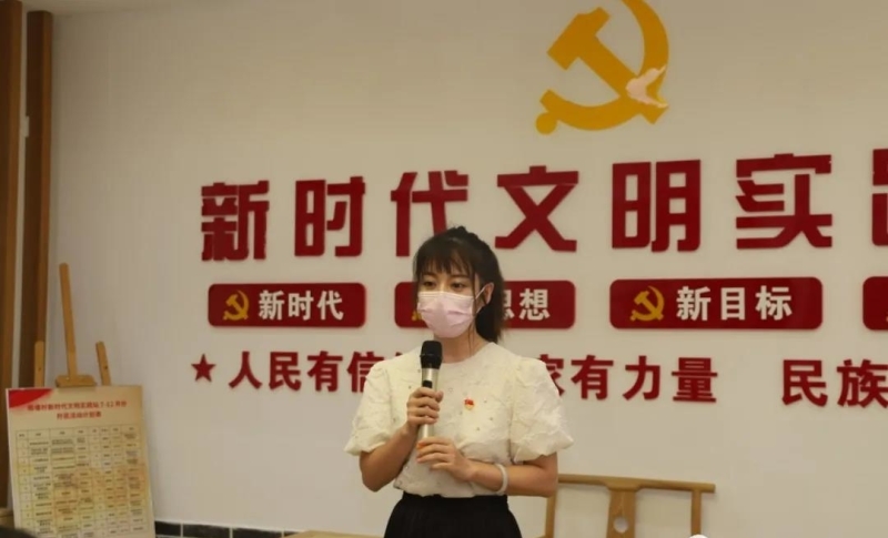 格塘村党支部第一书记蓝丽婷在复兴学堂宣讲。