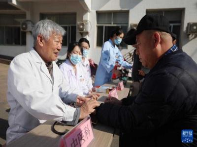 4月7日,在山东省临沂市沂南县中医医院,医务人员为群众义诊。