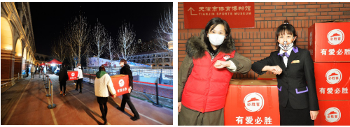 1月10日,腊八夜晚,天气格外寒冷。必胜客天津滨江餐厅等天津多家必胜客餐厅向社区周边的天津、五大道街道、新兴街道、南营门街道等社区送去比萨、炒饭、小吃等一千多份爱心晚餐,为寒风中的志愿者送去祝福与温暖。