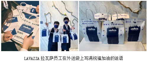 此外,百胜中国旗下具有127年历史的意式咖啡LAVAZZA拉瓦萨 ,在允许做外带和外送的门店,积极服务于周边社区居民,也为抗疫一线人员解决餐食供应的助了一臂之力,在特殊时刻,用一杯醇香咖啡和精美的点心守护城市的优雅。