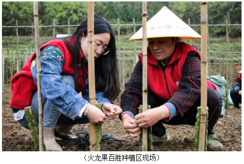 村委会的广播还在继续,“必胜客扶业社的老师们,也请前往地块,为村民们现场解答火龙果种植重点”。