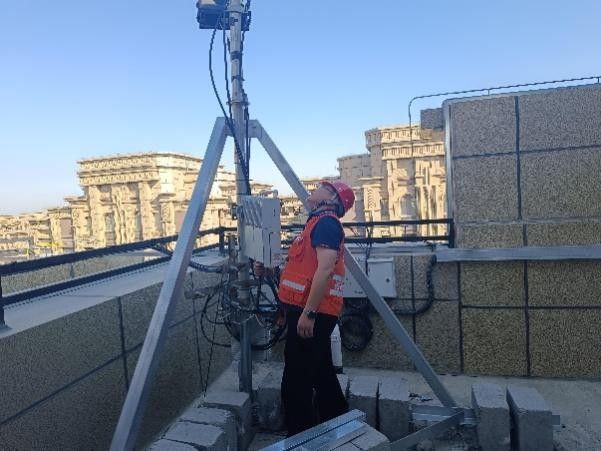 技术人员在华凌古树小镇小区楼顶检查新天线
