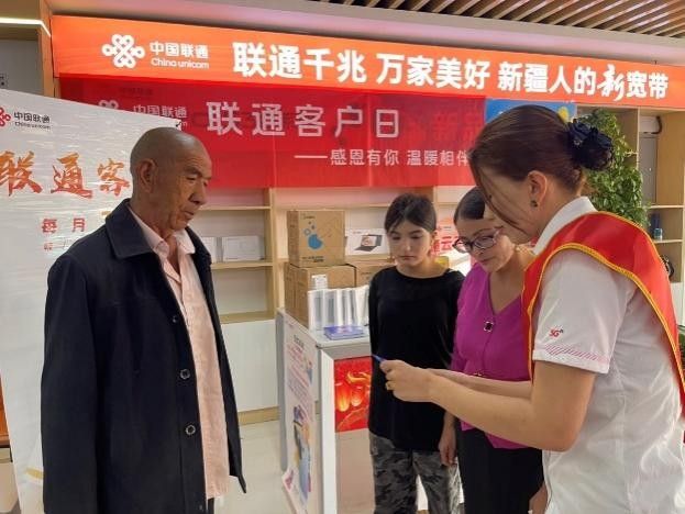 线上,中国联通App及10010网上营业厅专门打造“关怀模式”与“无障碍版本”,方便老年人轻松操作。同时,设立手机使用技巧、防诈骗知识等快讯专区,以视频、图文形式为老年人提供生活实用信息。线下,全疆自有营业厅均开设老年客户服务窗口与爱心专席。截至2025年8月,全疆已挂牌143家智慧助老体验中心,设置168家爱心服务驿站。