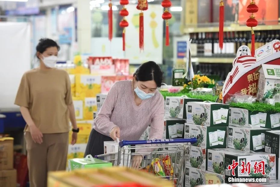 4月11日,上海金山区枫泾镇,居民在超市选购物品。中新社记者 田雨昊 摄