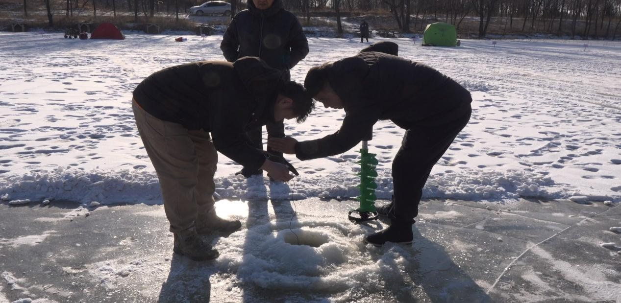 另一边,通榆县嘉禧乐园湖面上,首届冰钓比赛鸣哨开赛。多位来自全省的冰钓爱好者齐聚冰湖,以渔会友、畅享冰雪乐趣。随着开赛哨声响起,选手们迅速投入角逐,打冰眼、下鱼竿、搭帐篷,一系列动作娴熟利落。短短十几分钟,色彩鲜艳的垂钓帐篷在白茫茫的冰面上依次排开,构成冬日里一道亮丽的风景线。寒风凛冽丝毫未减选手热情,大家凝神静气紧盯鱼漂,时而轻提鱼竿试探,时而静待鱼讯,静谧中透着紧张的竞技感。