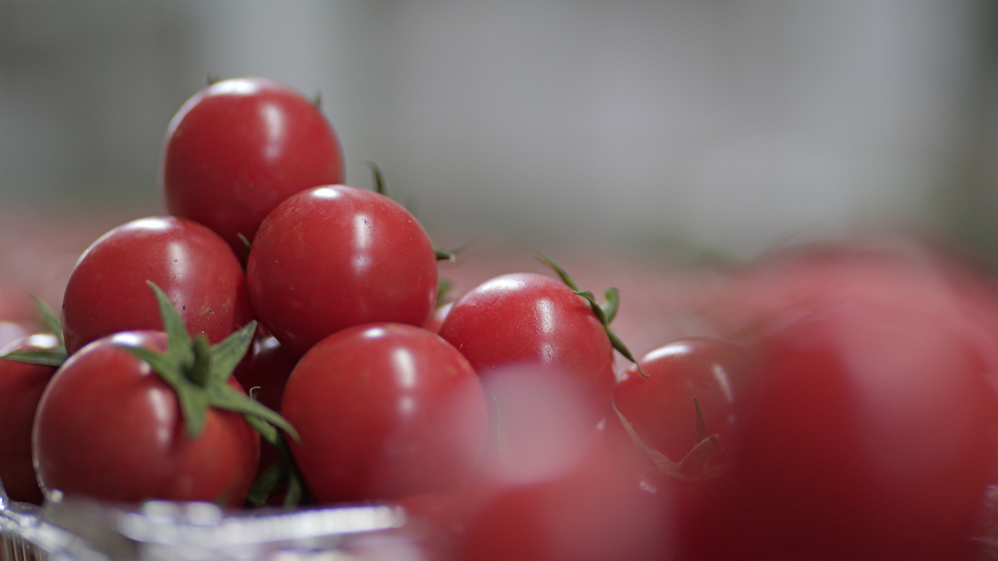 园区内,21栋番茄大棚种植着超过20个品种。为防控虫害,棚内悬挂防虫网与粘虫板,必要时人工抓虫,从源头守住品质防线。