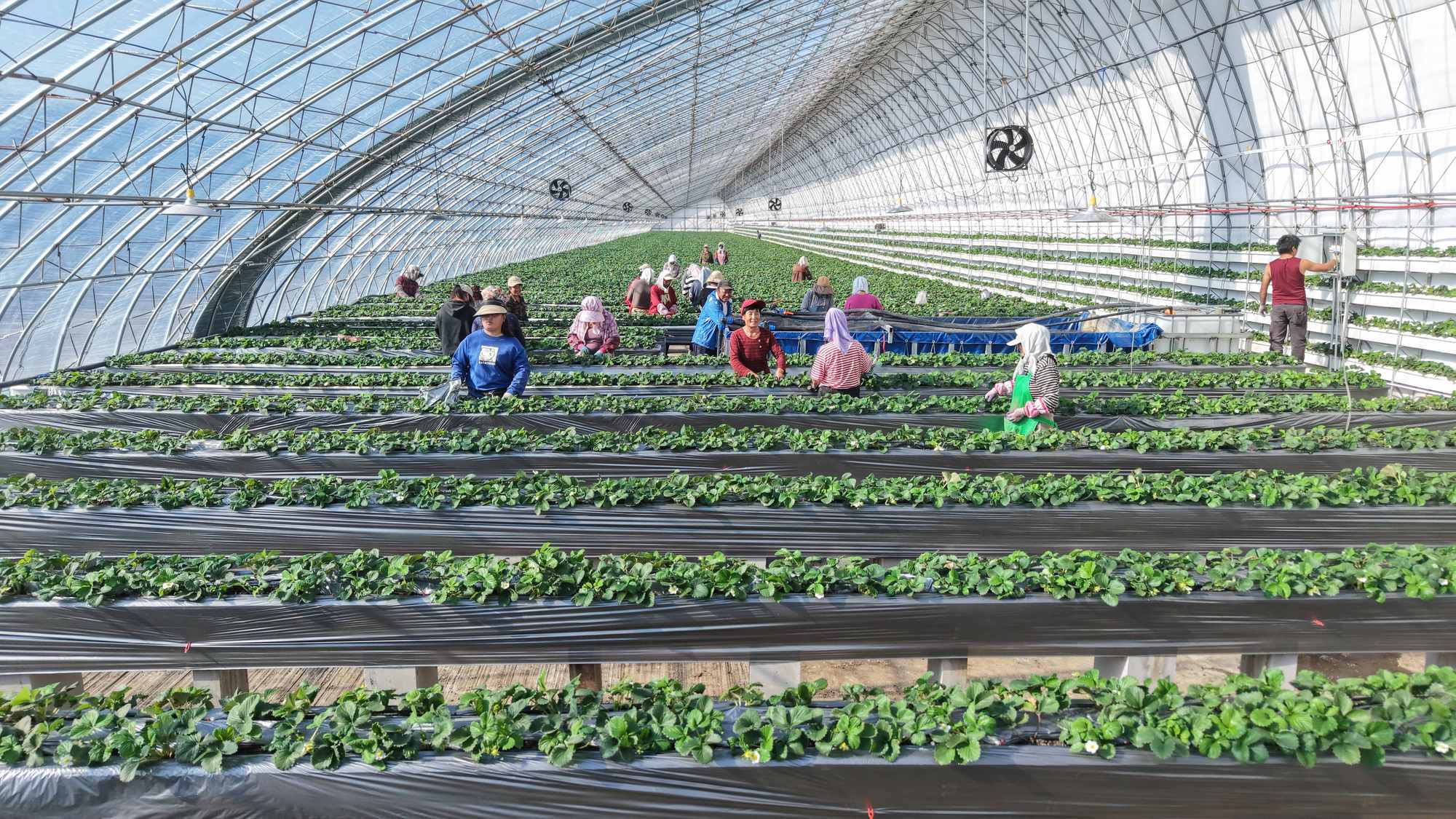 “一天145元日结,离家近还不累!”正在为草莓覆膜的村民笑着说。园区日均用工超10人,高峰期达30余人,让村民实现了家门口就业。