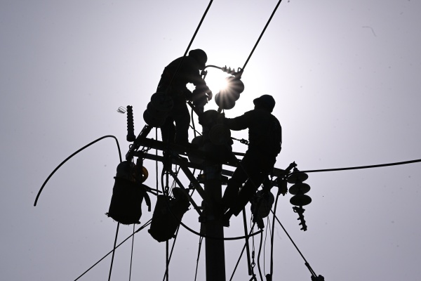 电力工人正在对线路进行升级改造。新华网发(向江微 摄)
