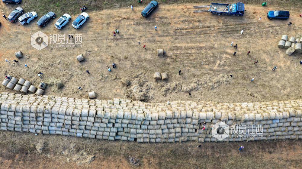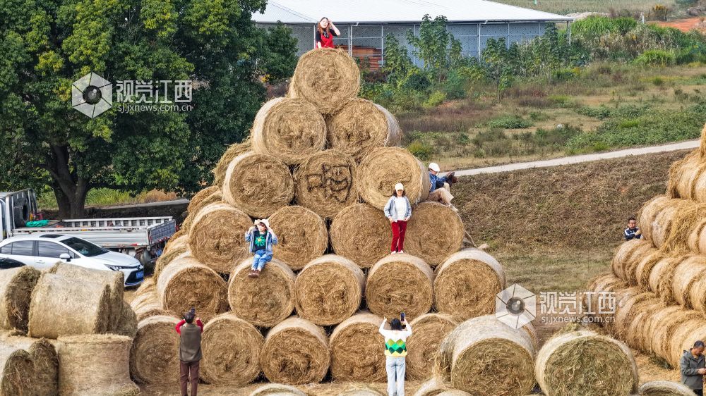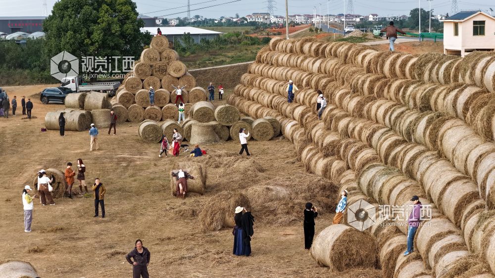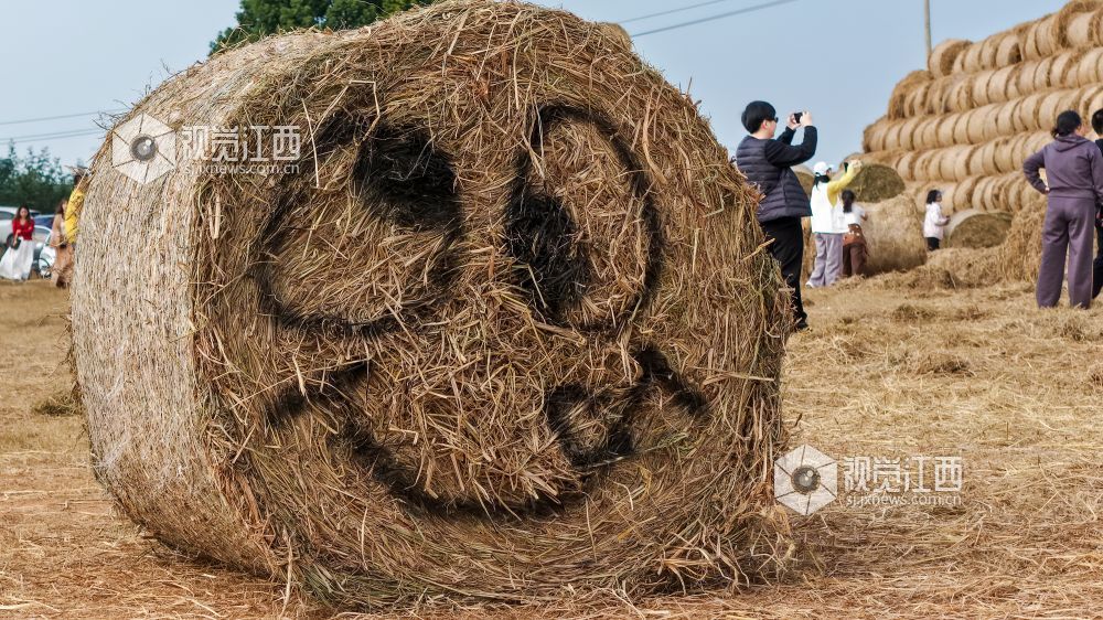 2025年10月24日,江西省南昌市新建区大塘坪乡新培村的村民利用秋收后的废稻草进行二次创作,将其打捆成垛形成独特的创意艺术景观,吸引众多村民和游客前来打卡参观、拍照,甚至还有人在草垛上涂鸦,为景观增添了趣味性和互动性。