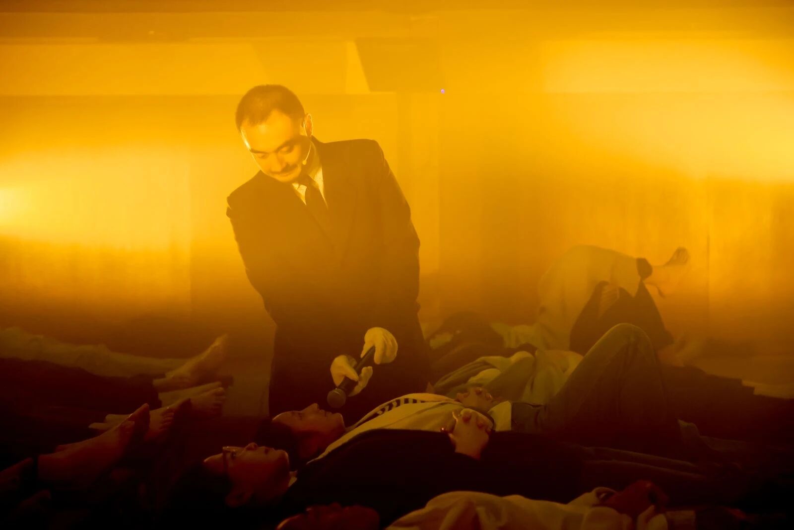 这场前卫的戏剧创作始于导演王翀的死亡焦虑。近几年,他经历了生活上大大小小的变故:摘掉胆囊、卖掉房子、步入不惑之年的同时频频传来同行旧友人生谢幕的消息。这些生命中不可控的变化,让他对人生的无常有了切身体验,也为他的戏剧创作提供了灵感。面对无常,躺平像是一种有意识的反叛,让人暂时脱离规范,直面自我。躺平的表象之下,导演引导观众去触碰更深层的思考:在科技与社会压力包围的未来中,继续探讨生命、时间与存在等哲学议题。