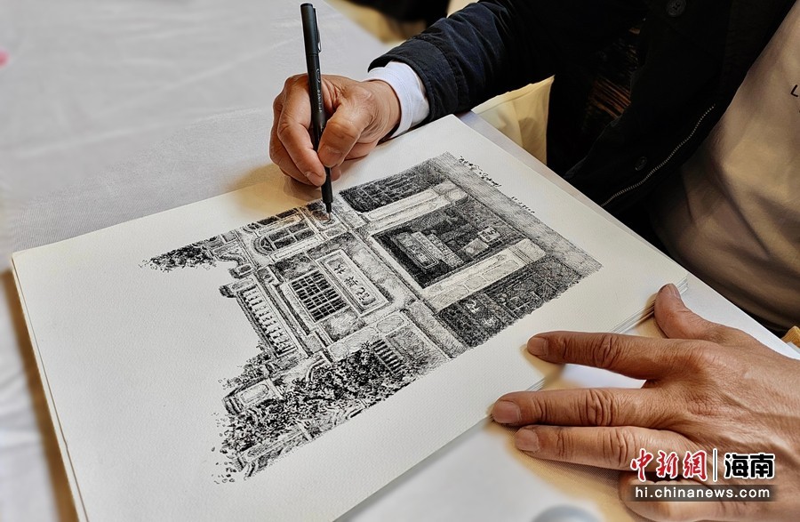 图为钢笔画家现场创作展示。 海南君华海逸酒店 供图
